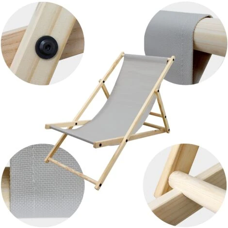 Con tre altezze di reclinazione selezionabili, potete determinare la vostra posizione di reclinazione individuale. Il pratico lettino da spiaggia si monta rapidamente ed è molto facile da sistemare e piegare, quindi può essere trasportato con risparmio di spazio e puoi facilmente rilassarti dove vuoi! Il lettino è fatto di legno di pino di alta qualità, ha una costruzione stabile, superfici lisce, è resistente alle intemperie e il tessuto oxford resistente e rivestito non sbiadisce.