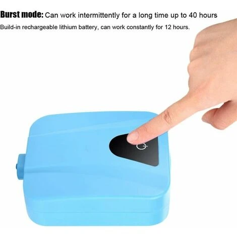 Batteria ad alta capacità: 3600 mAh ad alta capacità incorporata batteria, può funzionare costantemente fino a 14 ore una volta completamente carica. Nel frattempo, questa pompa ad aria può essere caricata in corrente continua con un cavo USB.