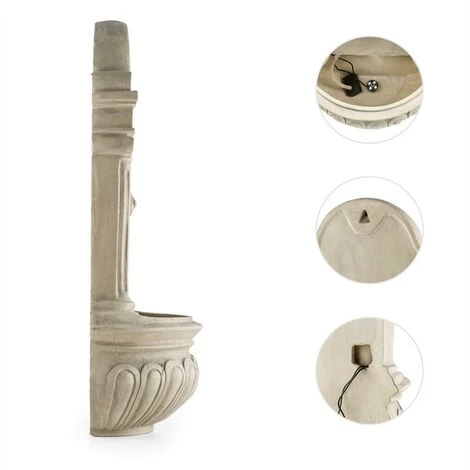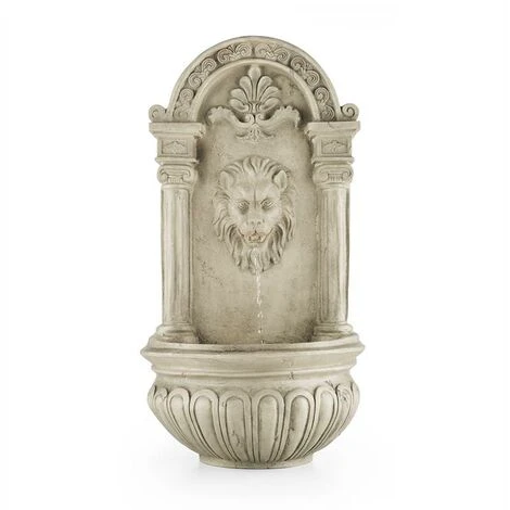 La Fontana da Giardino Löwenstein di Blumfeldt trasforma nude pareti in paesaggi che richiamano l’antica Grecia. La fontana a muro è realizzata in robusto poliestere con un’ottica in pietra. Circondata da colonne doriche e ornamenti antichi, l’acqua fuoriesce dalla fiera testa di un leone e incanta i sensi. Una pompa piccola ma potente garantisce una corrente continua con 200 litri di acqua in ricircolo all’ora e, inoltre, non c’è bisogno di riempirla di nuovo con altra acqua. Una piccola ghirlanda di luci a LED garantisce l’illuminazione notturna. La potenza della fontana, però, non si esaurisce: al posto della presa, la corrente proviene da un pannello solare con una potenza di 2 W, rispettoso sia dell’ambiente che del portafoglio. Il pannello solare, inoltre, grazie al lungo cavo conduttore e alla presa da terra di 30 cm può essere posizionato liberamente nel posto più soleggiato. Esso, oltre a dare energia alla pompa, carica anche la batteria a litio 3,7 V / 2000 mAh integrata, in modo da rendere la fontana funzionale anche di sera.