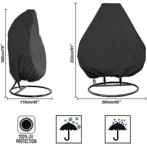 Descrizione Materiale: Oxford più resistente e stabile Dimensioni: 190 x 115 cm (sedile singolo) La copertura protettiva è resistente alle intemperie e alla polvere. La fodera protegge la tua sedia a dondolo da esterno da forze come vento, tempeste di sabbia, sole e pioggia, ecc. Questo tipo di fodera per sedia a dondolo sospesa è stata semplicemente pulita con un panno umido e asciugata al sole. un orlo elasticizzato con coulisse con un bilanciere nella parte inferiore per una vestibilità comoda e personalizzata Fodera per sedia a dondolo sospesa classica: tessuto in poliestere resistente e leggero con rivestimento impermeabile e antipolvere, che può proteggere la tua sedia da esterno da elementi come vento, tempesta, sabbia , sole e pioggia ecc.