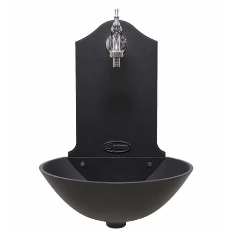 Fontana a muro modello Malaga, in fusione d’allumino verniciata grigio ghisa completa di rubinetto in ottone cromato.
