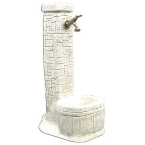 Manufatto in granulato di pietra, cemento bianco, armature interne in ferro zincato e additivi idrorepellenti, finitura realizzata a mano, colore grigio, tubazione interna. Dimensioni 32x42xH73 cm. Peso 28 Kg. Rubinetto 1/2 (ns. cod. 531604) non in dotazione