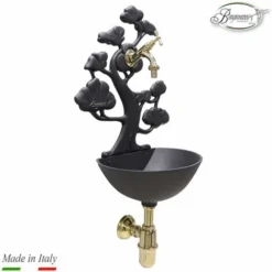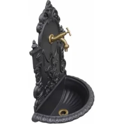 Fontana A Muro Mod. Azalea Colore Ghisa Per Casa E Giardino Con Rubinetto Cod.303B In Ottone Brunito