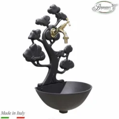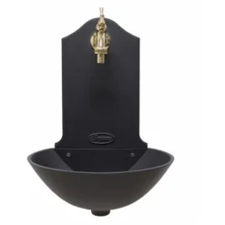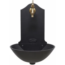 Fontana A Muro Mod.Marbella Colore Ghisa Per Casa Giardino Con Rubinetto Cod.303B In Ottone Brunito