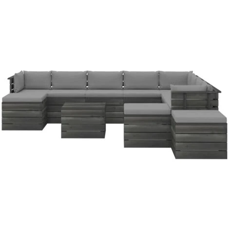 Il set di divani da giardino è realizzato in legno massello di pino, materiale che rende il prodotto robusto e resistente. Questo set di divani da giardino presenta una costruzione solida e richiede poca manutenzione. Con un piano del tavolo robusto, il tavolo è ideale per tenere a portata di mano cibi e bevande. Grazie al rivestimento 100% in poliestere e alla spessa imbottitura, i cuscini del pallet sono morbidi e garantiscono il massimo comfort. Inoltre, il design modulare consente di posizionare il set in qualsiasi disposizione secondo i vostri gusti.