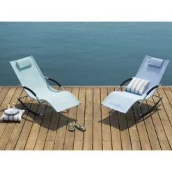 Lettino Prendisole A Dondolo Acciaio E Fibra Sintetica Blu Con Cuscino Carano