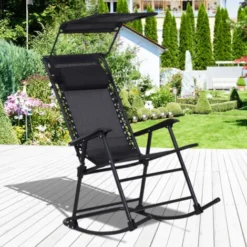 Outsunny Poltrona Sedia A Dondolo Da Giardino Esterno Con Baldacchino, Nero, 105x 64 X 125cm