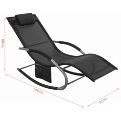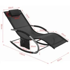 SoBuy Poltrona Dondolo, Sdraio Relax, Sedia A Sdraio, Con Poggiatesta, Nero OGS28-SCH
