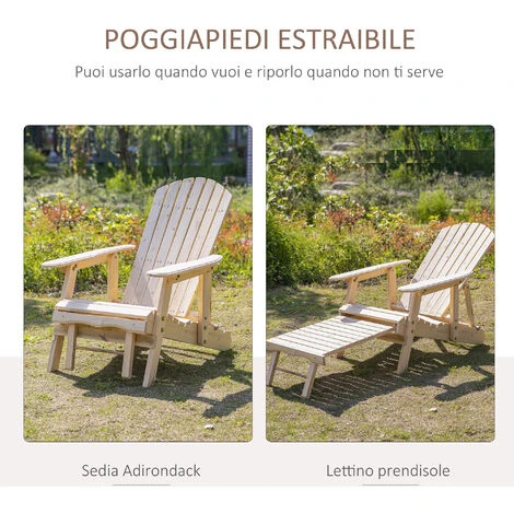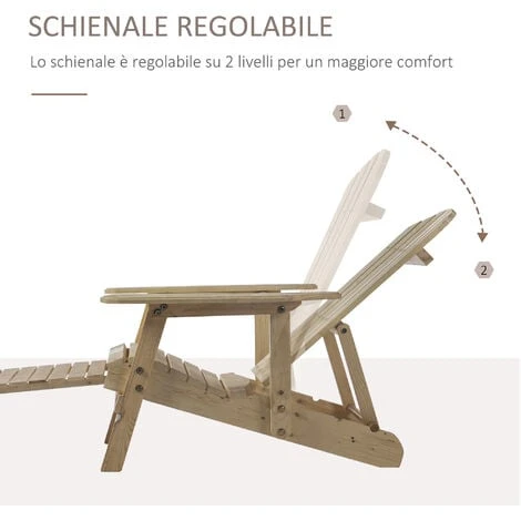 Questa sedia a dondolo Adirondack sarà una bella aggiunta per il vostro giardino. Oltre al suo aspetto splendido, offre anche posto comodissimo per rilassarsi. Il suo schienale è regolabile in 2 livelli per soddisfare tutte le vostre esigenze. In più, dispone di un poggiapiedi pratico per alzare i piedi. Il poggiapiedi è estraibile per risparmiare tanto spazio quando non viene usato. Realizzato in legno di abete di elevata qualità e lavorato con attenzioni anche ai minimi dettagli.