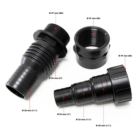 | Raccordement de tuyau Ø / Pouce | 20 mm/ 25 mm/ 30 mm/ 32 mm/ 38 mm |