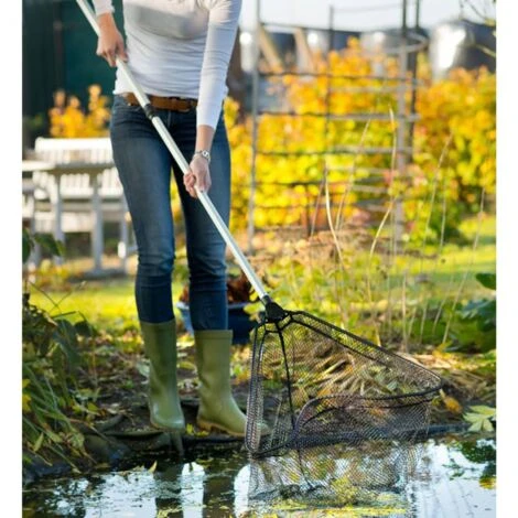 Questo guadino offre anche una lunghezza sufficiente per raccogliere facilmente alghe fini e rifiuti vegetali dallo stagno.