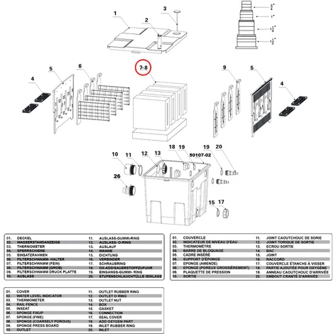 Set di ricambio completo di 4 spugne (2 grosse e 2 fini) per una facile sostituzione. Adatto per il filtro per laghetti Bio CBF-350 (articolo WilTec: 50107).
