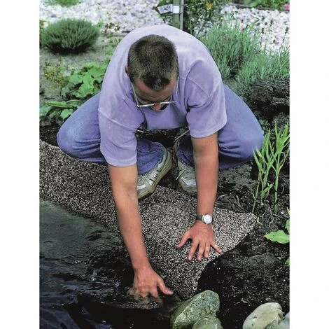 Il rivestimento è realizzato con ghiaia fine, che gli da un aspetto naturale. Il rivestiment in pietra può essere tagliato a misura con le forbici, per adattarsi perfettamente alle dimensioni del laghetto.